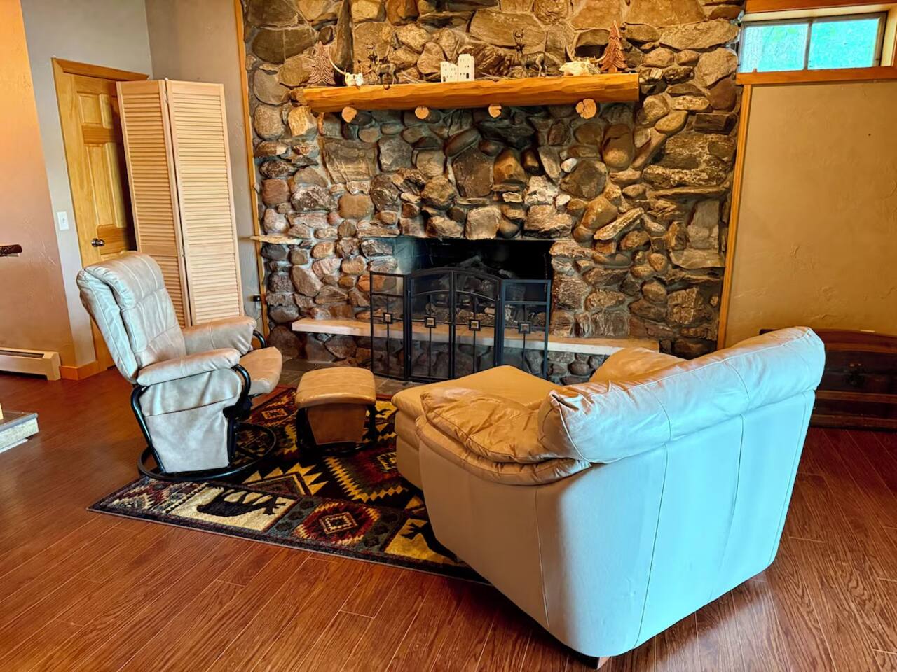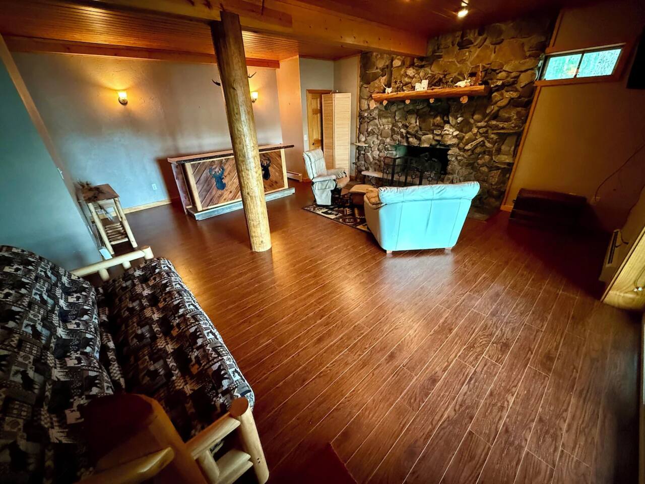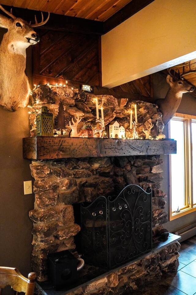 Spacious two bedroom house right on Horsehead Lake. You'll get the whole house to yourself. Two fireplaces, 1.5 baths, downstairs bar area, deck access from the bedroom and two twin beds for the kids. FYI this is a Main House that has four other cabins on the lot. The main grilling area and pier may be used by anyone staying. Great access to trails from property. With amble parking there is more than enough room to bring trucks, trailers and sleds.